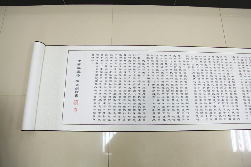 宋百顺表示,他始终牢记自己在入党时宣誓“为实现共产主义奋斗终身”,在几十年的工作中一直坚守“全心全意为人民服务”的宗旨。十八大以来,以习近平总书记为核心的党中央以巨大的政治勇气和强烈的责任担当推动了党和国家事业发生历史性的变革,使国家日益强盛、社会和谐安定,人民安居乐业。特别是十九大明确了夺取新时代中国特色社会主义伟大胜利,为实现中华民族伟大复兴的中国梦不懈奋斗的主题和目标,让他倍感中国共产党的伟大和自身作为一名党员的光荣。“虽退却未休,甘做孺子牛,忘我献余力,耕耘不计酬,淡泊以明志,洁身无所求,忠心为报国,奋笔写春秋”是宋百顺退休后练习书法的初心,而50米的书法长卷则是他爱党护党永跟党走的真情流露。
