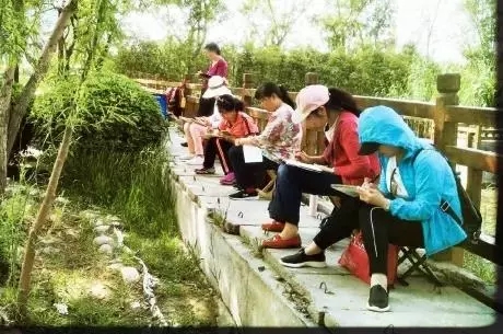 零基础的曲培蕴同学,总觉得自己“笨”。因此她上课认真做笔记,还用手机录下老师教的示范画,反复看反复练,又把自己的习作一次次发到班里的微信群,请老师指导,直到老师评出“100分”,曲培蕴才会发出一个“笑脸”。而班里有基础又当过中学老师的朱瑛大姐,她笔下的风景总有“迟日江山丽,春风花草香”或“小桥流水人家”的唐诗宋词韵味,因此每每会得到老师好评。就像班长黄涛大姐常对大家讲的那样:“只要我们认真学习,有一颗追求大美的心,定能绘出五彩夕阳。”同学们对此坚信无疑。