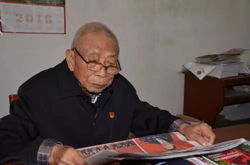 6月10日,新县。苍山如黛,溪流潺潺。在树木掩映的一栋陈旧楼房里,87岁的老党员齐振华正在卧室中读书。