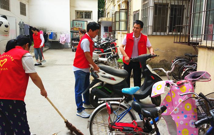 根据省委社区统一安排,志愿者们到达省委社区三区后,立刻以饱满的热情投入劳动中。大家拿着工具,发挥团队协作精神,相互配合,自领任务,有的清扫垃圾、有的清理花坛、有的整理摆放杂物和自行车,尽管天气炎热,但个个劲头高涨、干劲十足。经过一个小时的清理整治,整个社区的公共环境被打扫的干干净净,圆满完成了卫生任务。