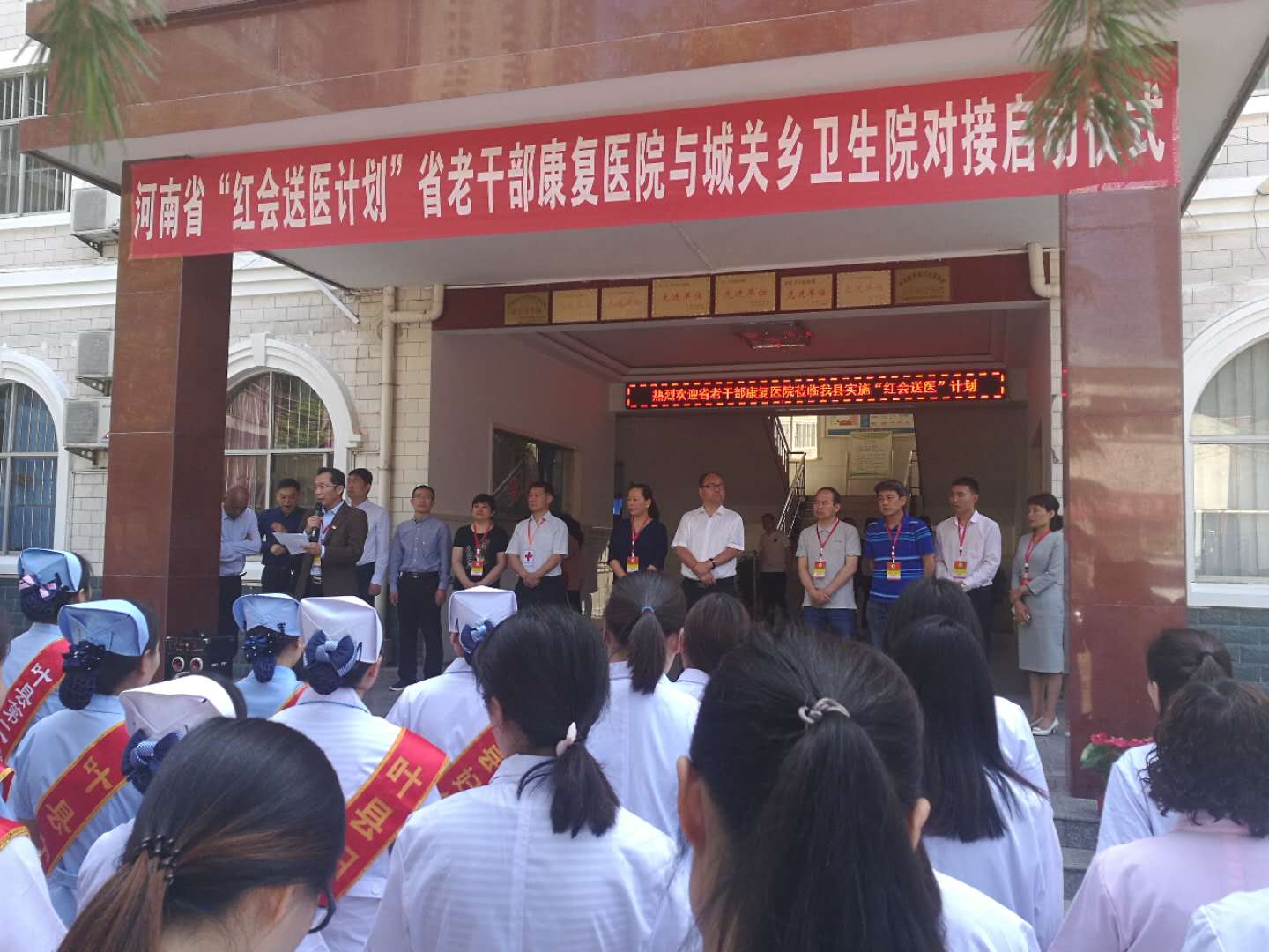 5月3日上午,省老干部康复医院2018年度“红会送医”活动启动仪式在叶县城关镇卫生院举行。院长杨惠芳带领医疗专家志愿服务队出席启动仪式。