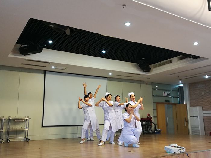 随后,多名护士表演乐护士礼仪展示和洗手舞。引起全场观众的阵阵欢呼与掌声,将现场气氛推向高潮。