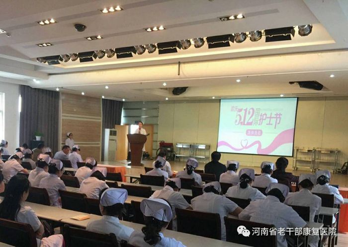 5月11日下午,省老干部康复医院组织召开院内大讲堂,以护士演讲、礼仪展示等活动庆祝“5.12”国际护士节的到来。院领导班子、部分行政后勤和一线职工、以及全院护理人员近百人参加。
