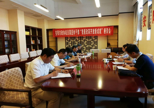 近日,安阳市委老干部局在全市离退休干部中广泛开展了“我看改革开放新成就”专题调研座谈活动,引导老同志忆往昔、谈变化、话发展、献良策,为建设幸福美好和谐社会增添正能量。