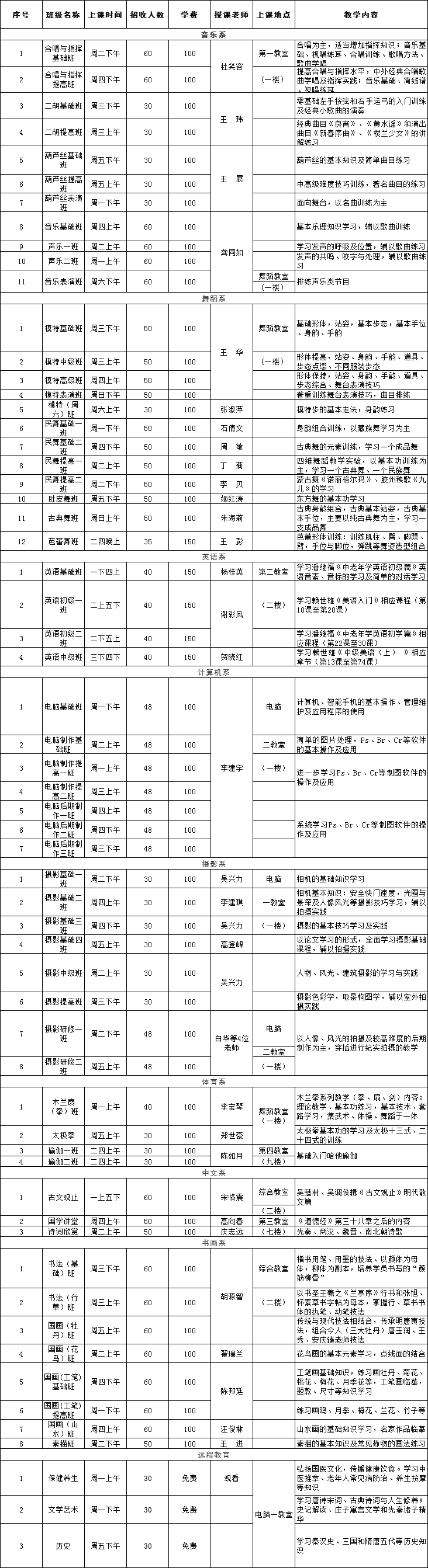 2.每人限报3个班级,其中音乐、舞蹈、模特、英语、电脑、瑜伽六个专业,每个专业只能选报一门。选报提高班的学员,必须具备所报专业基础水平方可报名;