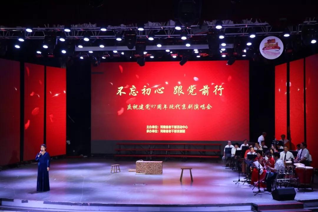 省老干部京剧团共同努力、精心排练,在庆祝建党97周年之际,以京腔琴韵向党献上诚挚的祝福,表达了拳拳赤子之心。一首京剧曲牌《琴缘》,拉开这场演出的帷幕;京歌《中国脊梁》唱出了中华民族的命运与中国共产党风雨同舟,唱出了中华民族复兴之路上坚强挺立的中国脊梁!《杜鹃山-乱云飞》、《红云岗-为亲人细熬鸡汤》、《红灯记-痛说革命家史》、《白毛女-扎红头绳》、《智取威虎山-深山问苦》等一段段京剧折子戏不断将现场推向高潮;最后一段京剧曲牌加舞蹈《夜深沉》更是现场掌声雷动。演出结束之后,观众意犹未尽,纷纷涌上台前和演员拍照留念,迟迟不肯离去。