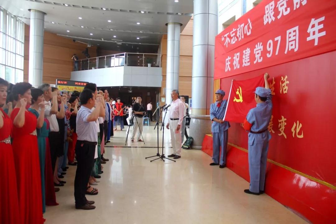 6月28日的文艺演出之前,在场全体党员高举右手,在党旗下庄严宣誓,重温入党誓词,激发党员对党的满腔热忱和坚定信念,焕发党的战斗力、生命力、感召力。大合唱《唱支山歌给党听》唱出了老干部对党的热爱,唱出了不变的信仰和不懈的追求,让党旗永远飘扬在人民群众的心中,也让中国人得出了永远跟党走的结论,节目具有深刻教育意义。国家一级演员、著名豫剧表演艺术家李梅娈一曲《喊一声焦书记》,展示了焦裕禄党的好干部与人民群众的深情厚谊;器乐合奏《红旗渠水绕太行》以恢弘的气势,抒情的旋律,再现了当年林县人民在党的领导下战天斗地的精神面貌。每个节目都丰富多彩、各具特色,欢快的节奏,优美的旋律获得台下观众的一致好评。尤其是《中国脊梁》、《中国之梦》,将演出一次又一次地推向高潮,博得了观众的阵阵掌声,现场始终洋溢着欢乐祥和的气氛。